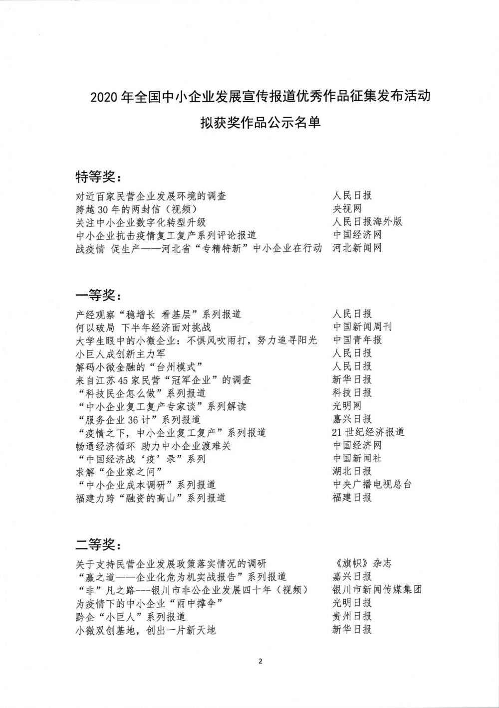 2020年全國中小企業(yè)發(fā)展宣傳報道優(yōu)秀作品征集發(fā)布活動評選結(jié)果公示